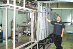 Полная автоматизация процесса производства. Сканирование образцом обеспечивает максимальную равномерность оптического уровня. Шлюзовая система предварительного нагрева и ионной очистки изделий. Суточная производительность до 200 шт. листов габаритом 1300х2500 мм.
