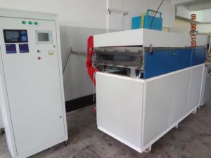 Установка предназначена для напыления покрытий из немагнитных металлов в вакууме на стеклянные или полимерные изделия.